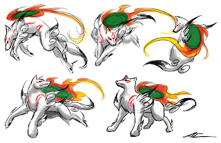 I love Okami, and drawing gestures for Ammy was very fun. I'm sure all of these poses are anatomically incorrect as I have little to no knowledge of wolf anatomy. :'D This was more of an exploration of motion and pose.